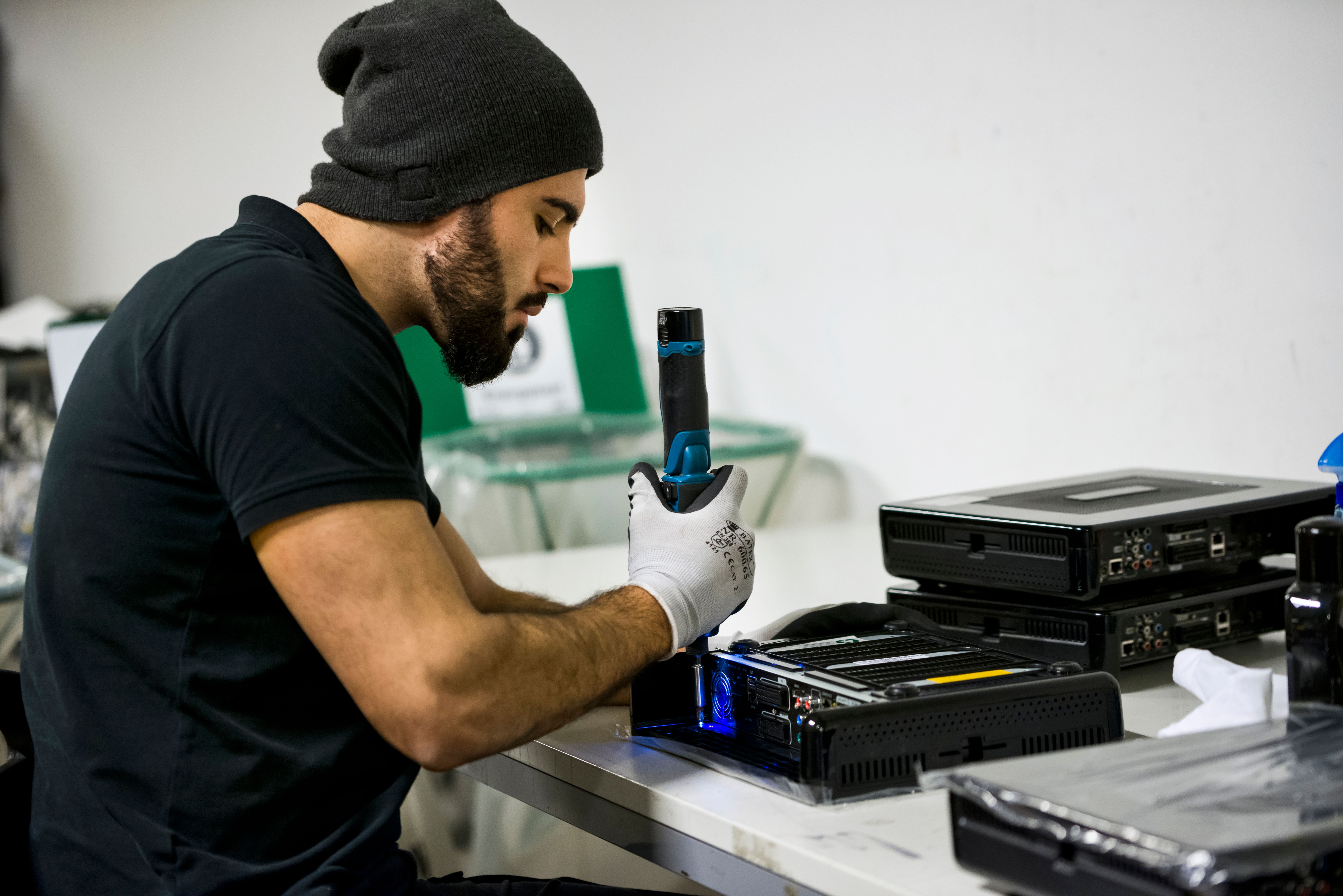 Vi konfiguerer og gjør produktene klare og like fine som nye igjen før de repakketeres. Produktene er nå klare til å bli brukt av nye fornøyde kunder.